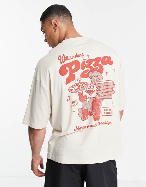 Asos Design Oversize T Shirt In Beige Mit Pizza Ruckenprint Asos